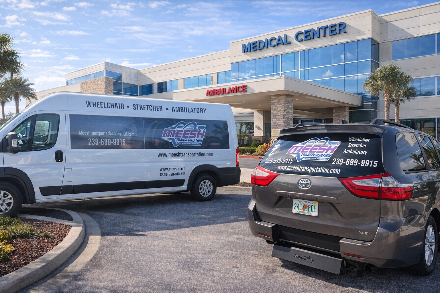Meesh Transportation provides reliable transport to a wide range of medical facilities across Southwest Florida. From hospitals and clinics to rehabilitation centers and specialist offices, we ensure you arrive at your medical appointments on time and in comfort. Our drivers know local healthcare facilities well, making your medical transport stress-free.
